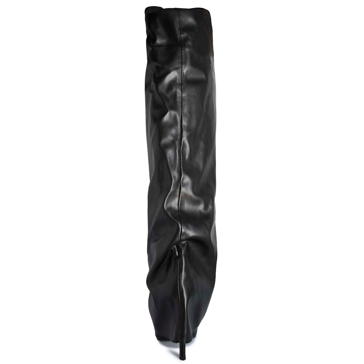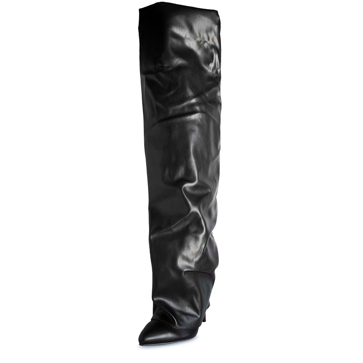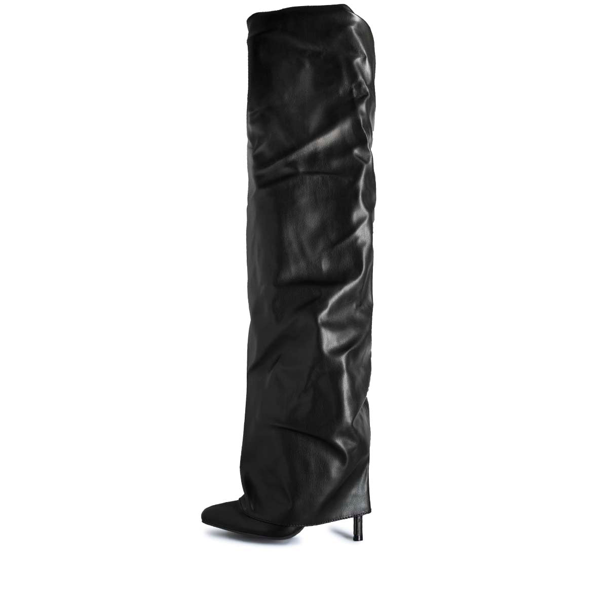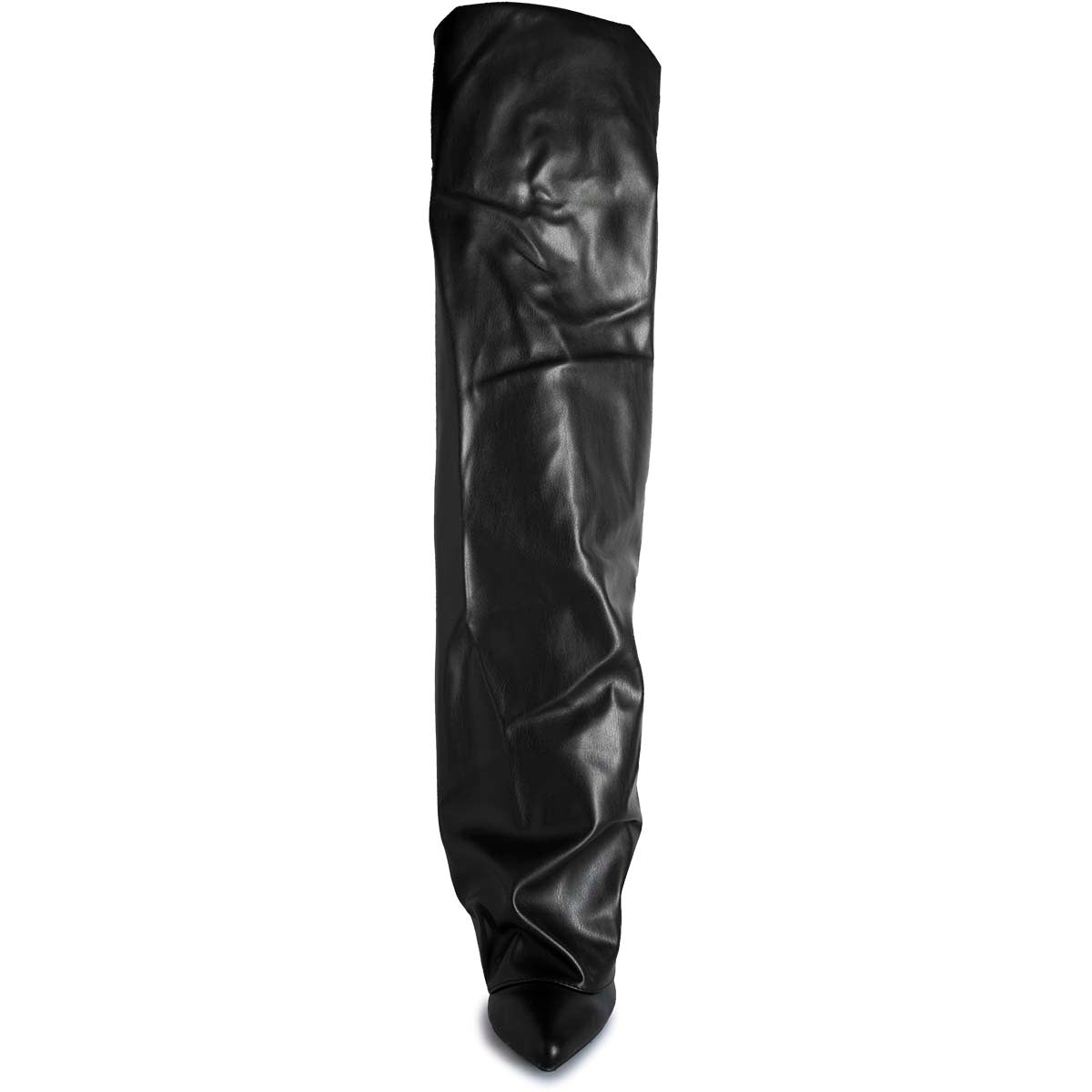 Botas largas acabado vinipiel con forro, punta en pico y tacon de aguja de 15 cm